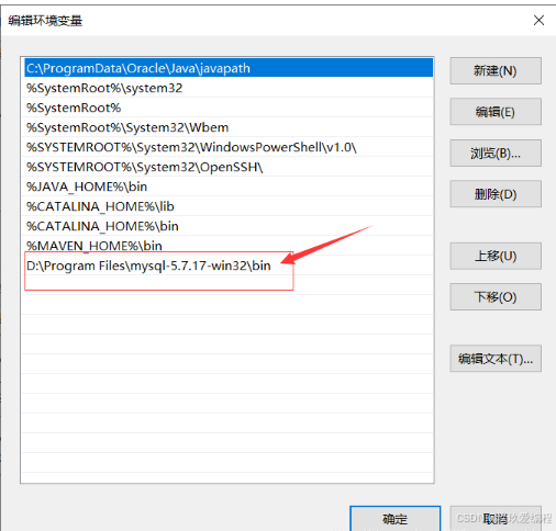 在环境变量Path中添加mysql解压后的bin目录所在的路径