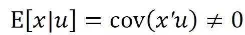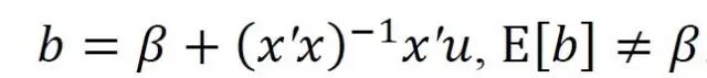 - 内生: error u 影响解释变量x,因而间接影响被解释变量y。