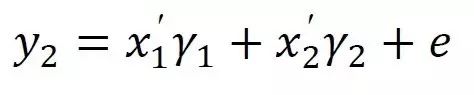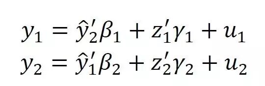 假设我们可以找到一组外生的变量(工具变量)z=[x1,x2],其中x1是自己的工具变量,x2是y2的工具变量。
