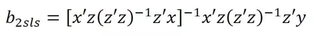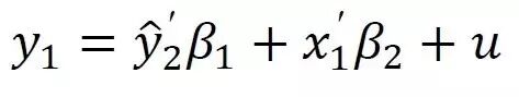 首先,通过对简化式进行OLS估计得到y的预测值(y帽),然后用y的预测值估计下式: