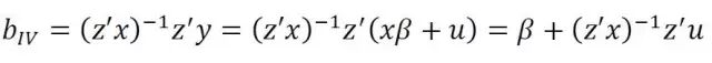 - 工具变量:工具变量z与x相关,但与error term u无关。即z能且只能通过x影响y。