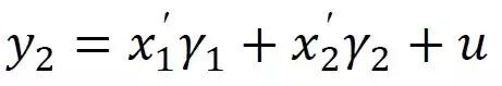 其中,y1是被解释变量,y2是内生变量,x1是外生变量。X由[y2, x1]组合而成,包含了内生和外生变量。
