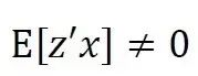 - 解释变量与error term相关。例子:y is earnings, x is years of schooling,u is error term (including ability), z is proximity to college。