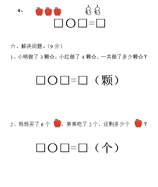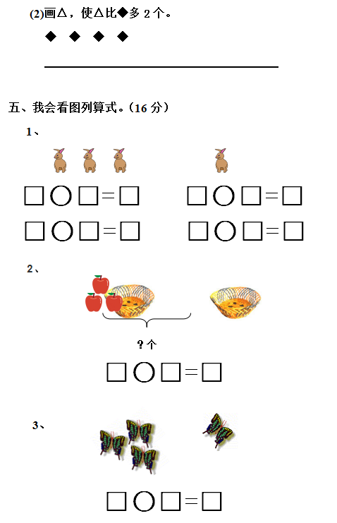 五、看图写算式。(共20分,每题5分)