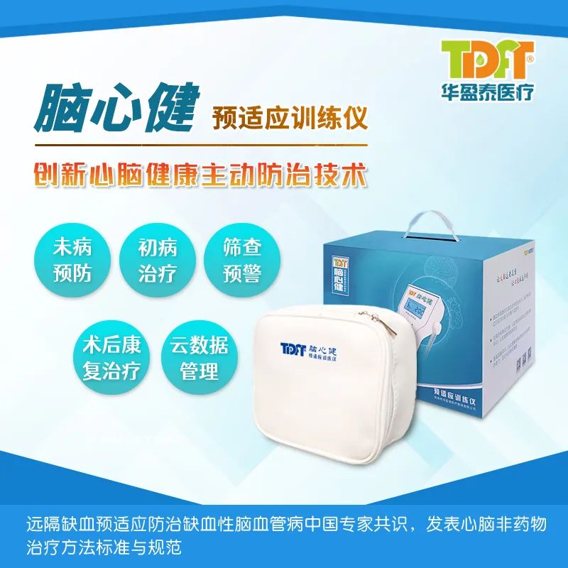脑心健预适应训练仪,由国家高新技术企业深圳市华盈泰医疗有限公司研发生产,通过对肢体进行反复的、短暂的、无创伤、无危害的缺血刺激,再灌输回流,激发人体免疫系统的应急机制,产生和释放内源性保护物质(如:腺苷、缓激肽、一氧化氮等),这些物质参与保护心肌和能量代谢。