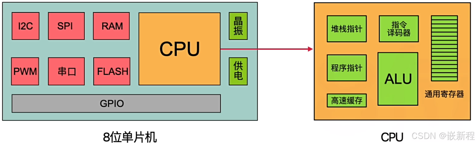 - SRAM一般存放临时变量,flash存放程序–程序存储器