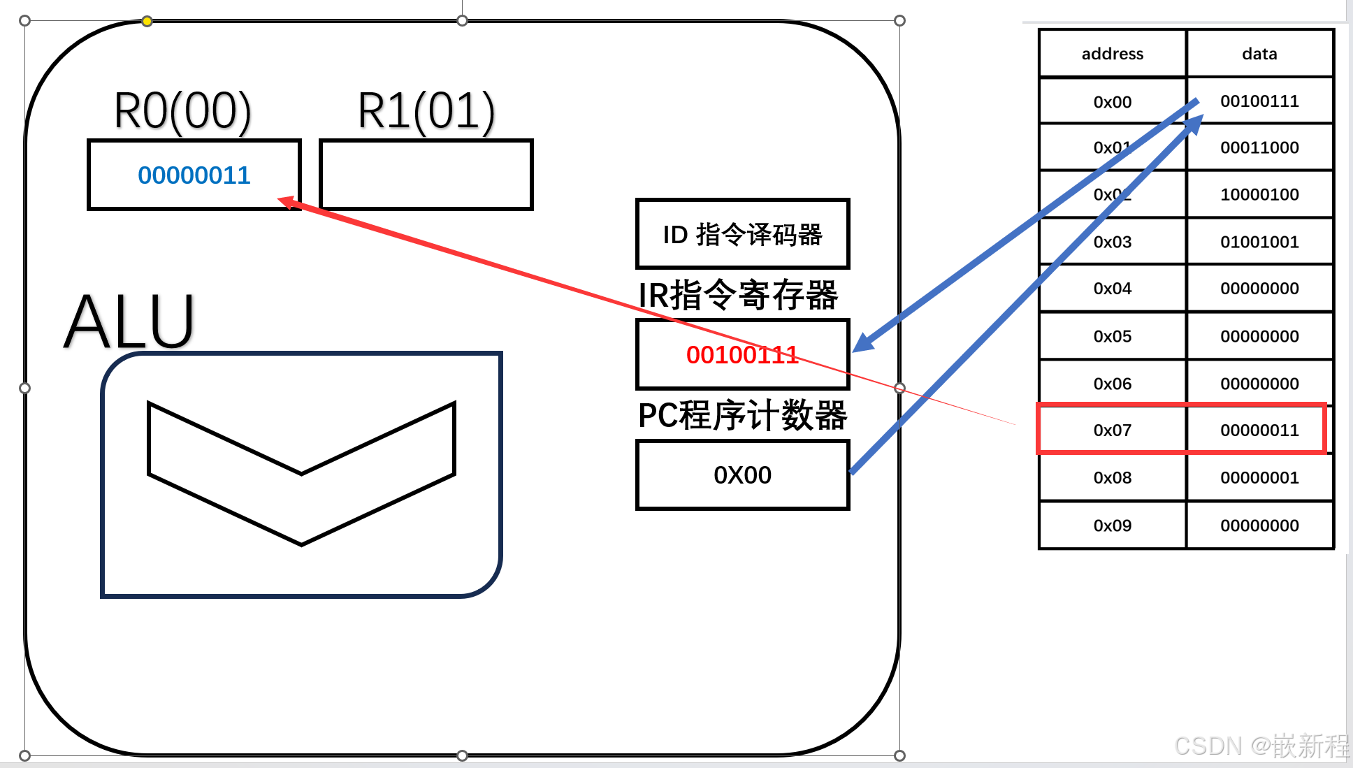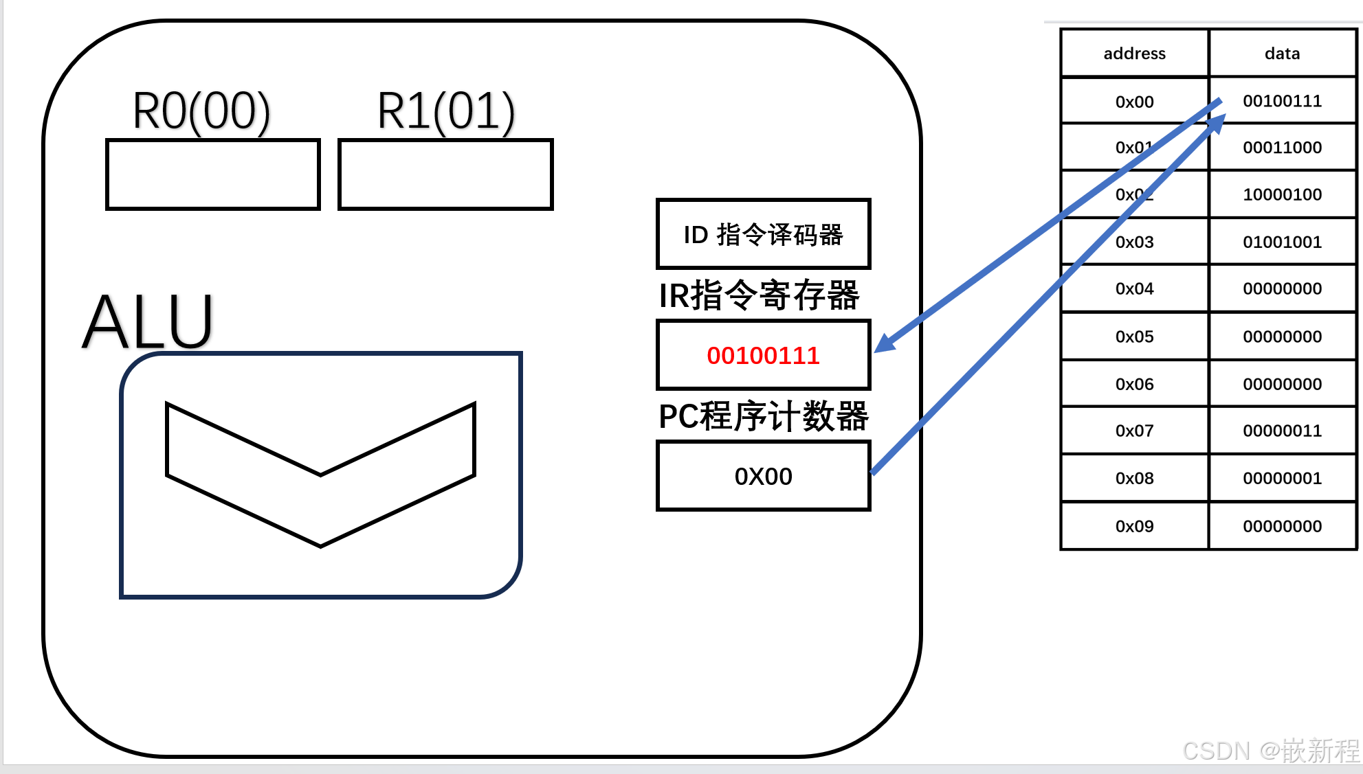 在CPU内需要存储单元来存储临时数据,这个存储单元叫寄存器 R0 R1