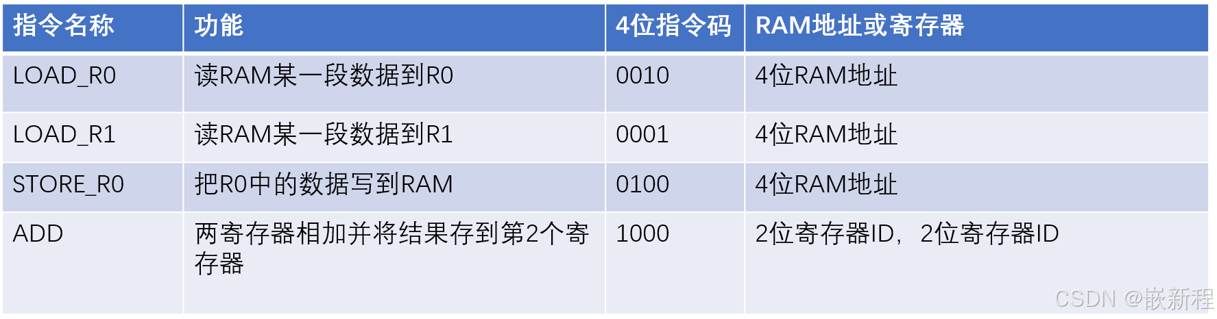 举例:(此为方便理解,并不是真实CPU中的指令集)