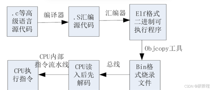 - 编译,将汇编文件转换成机器可以识别的二进制文件