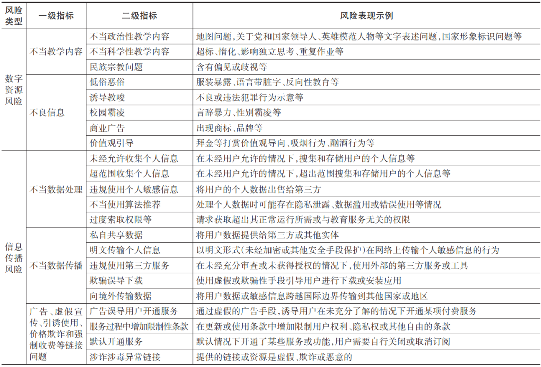 数字教育是数字中国的重要组成部分,更是建设教育强国的重要支撑力量。数字教育产品形态日新月异,数量规模不断攀升,且虚实融合环境中的学习者持续增多,这些复杂的在线学习场景对风险监管能力提出了更新且更高的要求。当然,数智技术的发展也为治理能力提升带来了更多的可能性,如以生成性要素挖掘为核心的语义解析技术将促进内容监管颗粒度更加精准,而污点传播和图卷积技术的发展将会促进数字资源传播溯源度不断提高(孟令宇,2022)。