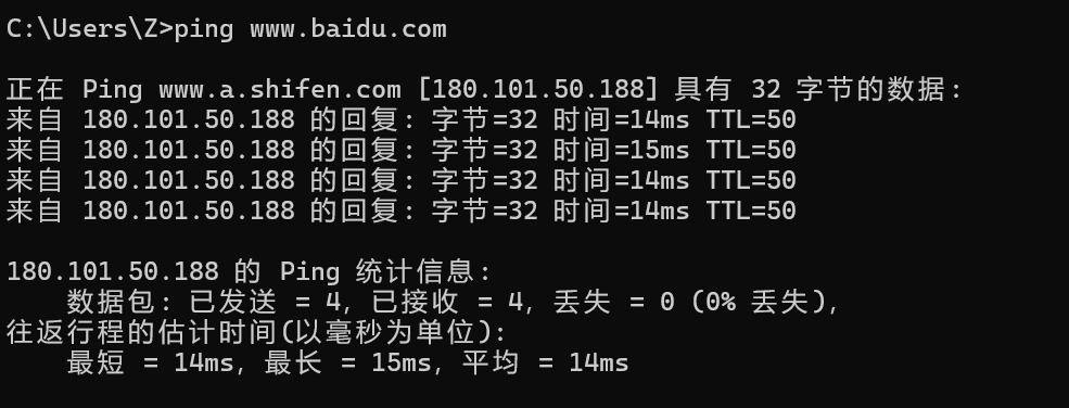 注意,此处ping的是域名,而不是url!一个域名可以通过DNS解析成IP地址。