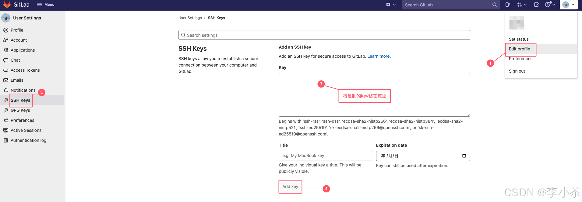 按下图所示顺序,找到添加 key 的入口,进行复制添加。