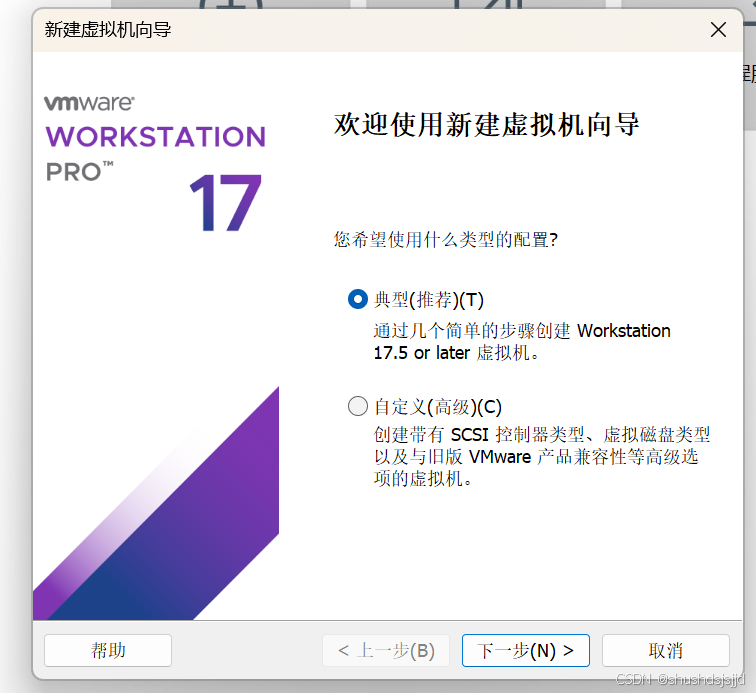 <p>1.文件菜单->新建虚拟机->典型->下一步</p>