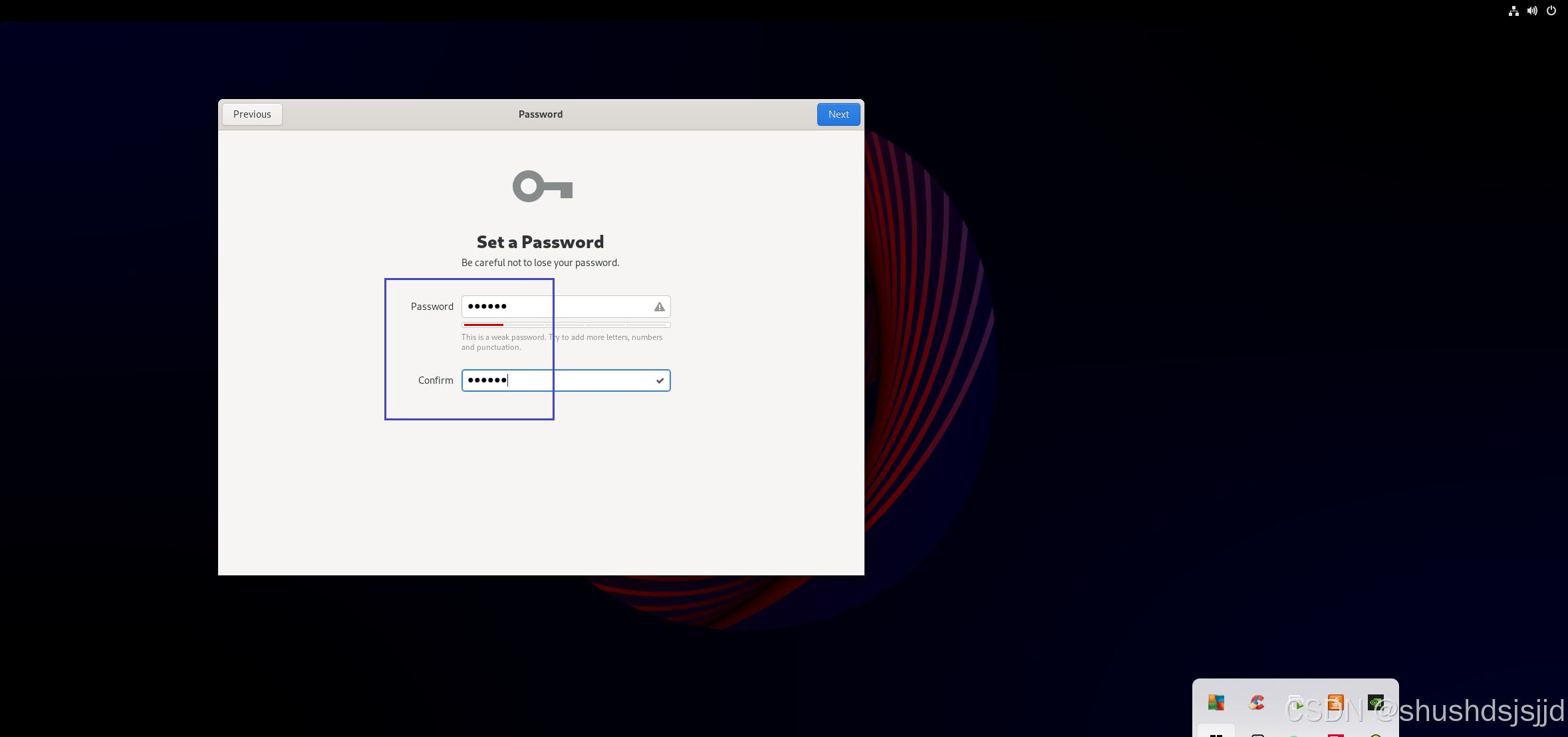 4.设置root账户密码,如果设置的密码为弱密码,则需要点两次确定