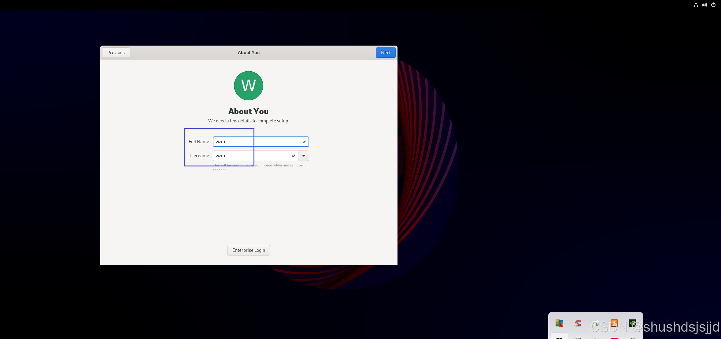 9.根据提示进行设置,并设置普通用户的用户名及密码