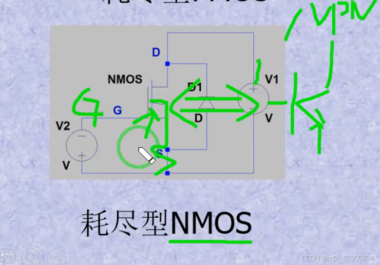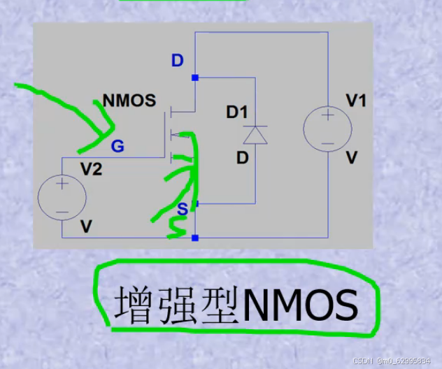开关电源通常使用增强型NMOS管,增强型栅极和箭头处连接线和为虚线