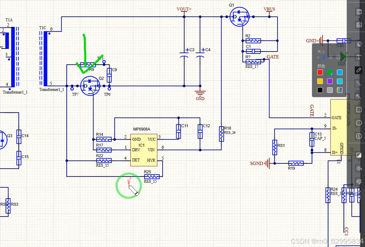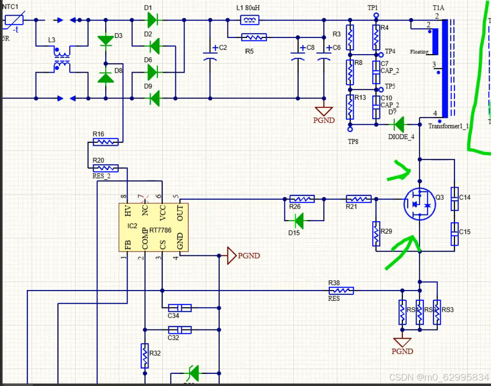 这个管子先是高压启动让IC先工作起来,工作起来后就有波形去控制管子的导通或者截至下面这个增强型NMOS,s极和d极方向错了,上面是电源输入端,下面是输出端,驱动IC