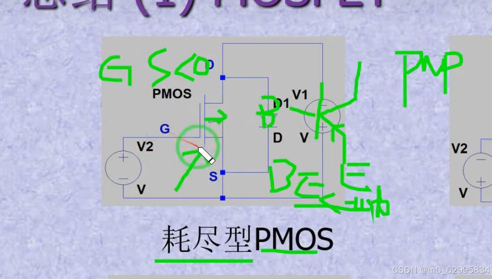 PMOS和PNP型三极管类似, PMOS是箭头向外,PMOS和PNP导通电压都是负压,就是PMOS的Vgs < 0,PNP的Vbe < 0,PMOS和PNP分别导通