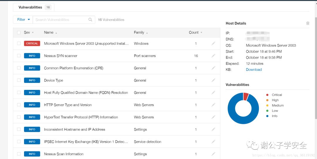 扫描完成的话,这里会有扫描的结构,漏洞分为5种程度,最高级别Critical最低级别info。