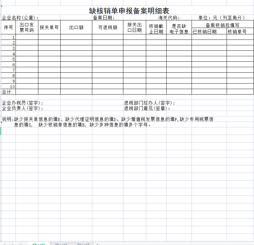 缺核销单申报备案明细表
