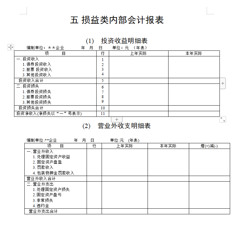 损益类内部会计报表