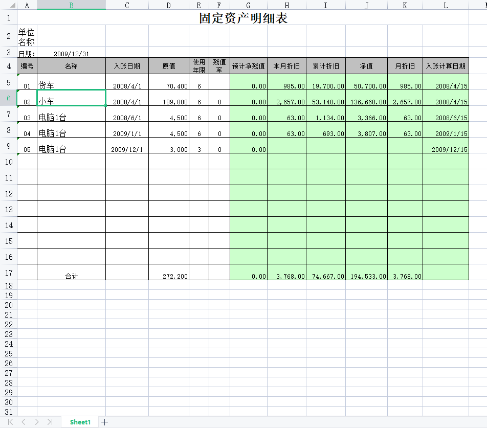 固定资产明细表