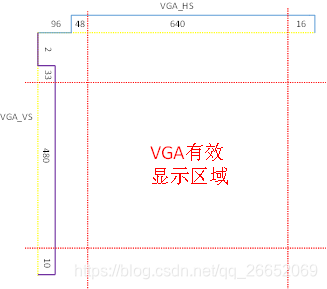 选择一个最常见的分辨率640*480p@60Hz,这里的640、480表示水平和垂直方向的像素点个数,也就表示VGA输出了一个60Hz的640*480的视频信号。把行时序与帧(场)时序合起来看: