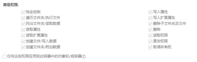 完全控制:该权限允许用户对文件夹、子文件夹、文件进行全权控制。