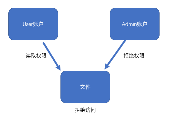 拒绝权限高于其他权限:拒绝权限可以覆盖所有其他的权限,甚至作为一个组的成员有权刚问文件夹或文件,但是该组被拒绝访问,则该用户本来具有的所有成员权限都会被锁定,从而导致无法访问此文件夹或文件。此权限规则会导致权限积累规则失效。