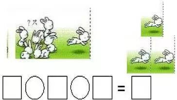 4、(1)一共有(7)只小兔,再添上(3)只就是10只。