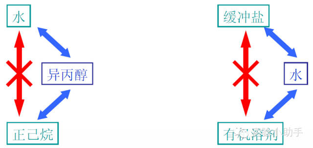 不互溶的流动相不能直接更换,缓冲盐不能直接用有机溶剂更换