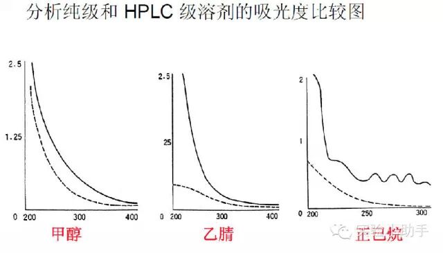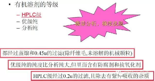 应选用HPLC级的有机溶剂。