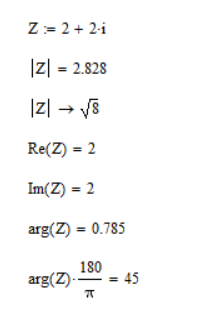 下面的例子使用了常用的复数操作工具,包括取模(数值形式和符号计算形式),取实部,取虚部、计算相位角(弧度和°两种单位)