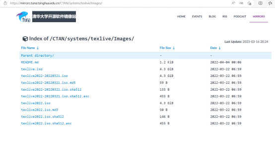 Texlive的下载可以在清华大学开源软件镜像站上下载,选择texlive2022.iso即可。