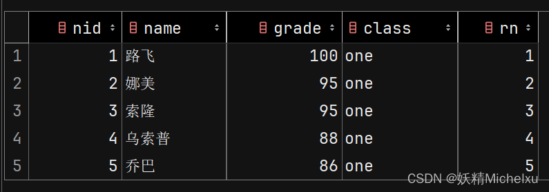 (1)row_number()排序函数是挨着一个个排下去,就算有重复的数据,也不会有重复的排名存在,请看下方代码结果: