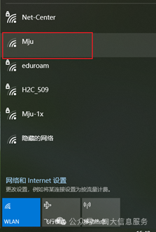 打开手机/平板/电脑的WLAN选项,点选名称为“Mju”的wifi信号,手机/平板/电脑会自动弹出认证登录界面,您只需输入自己的统一身份认证账号和密码即可完成登录,并且在上网设备不变的情况下,用户在首次认证过后7天内都无需重复认证。
