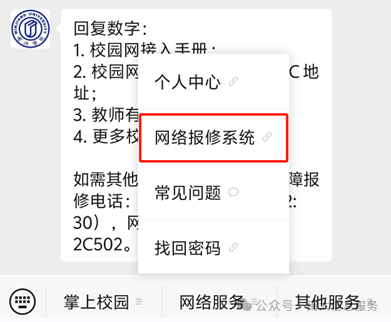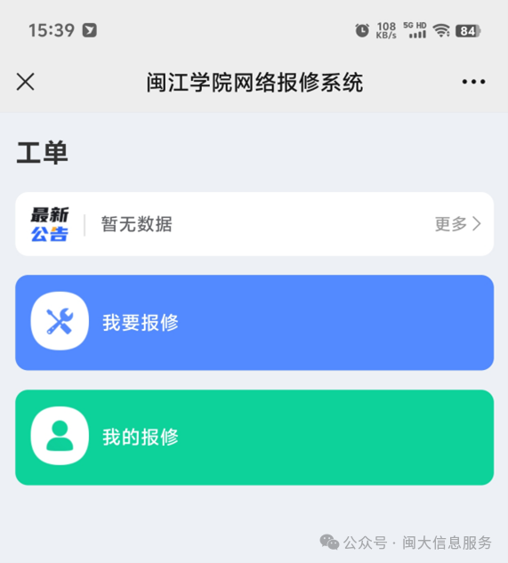 1. 网络报修:进入“闽大信息服务”微信公众号,在“网络服务”菜单栏中找到“网络报修系统”进行登记报修;