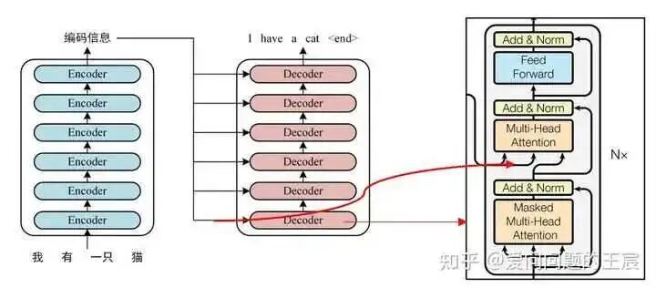 对于N=6的第2次循环:子Decoder block1的输入是N=1时,子Decoder block3的输出,KV同样来自Transformer Encoder的最后一层的输出。