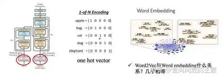 Embedding + Positional Embedding :以机器翻译为例,输入“Machine Learning”,输出“机器学习”;这里的Embedding是把“机器学习”也转化成向量的形式。