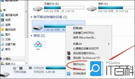 2、 右键单击可启动U盘。从各种选项中,单击“ 格式化 ”。