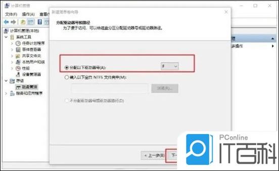 10、 接着到设置驱动器号界面,自行给u盘划分好驱动器盘符,点击“ 下一步 ”(注意是系统磁盘没用过的盘符),继续设置格式化操作,点击“ 下一步 ”。