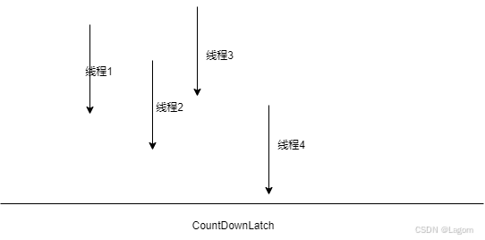 不同的线程执行任务的速度不同,但是有时候我们需要所有线程都完成之后每个任务才能进行下一步这个时候就要用到 CountDownLatch,所有线程到达图中CountDownLatch后才会继续向下执行