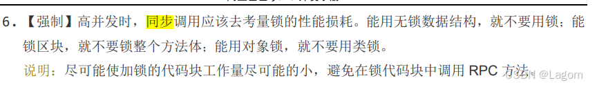 synchronized 可以锁 静态方法、方法、代码块 ,锁的粒度逐级减小 在使用synchronized 的时候能用小粒度的不要用大粒度的 ,阿里开发手册上也给出了建议: