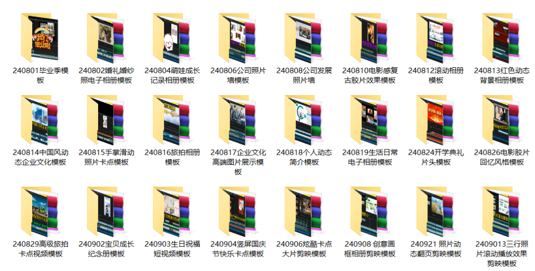 今天给大家分享253套剪映模板,包含调色预设、转场、特效等等。