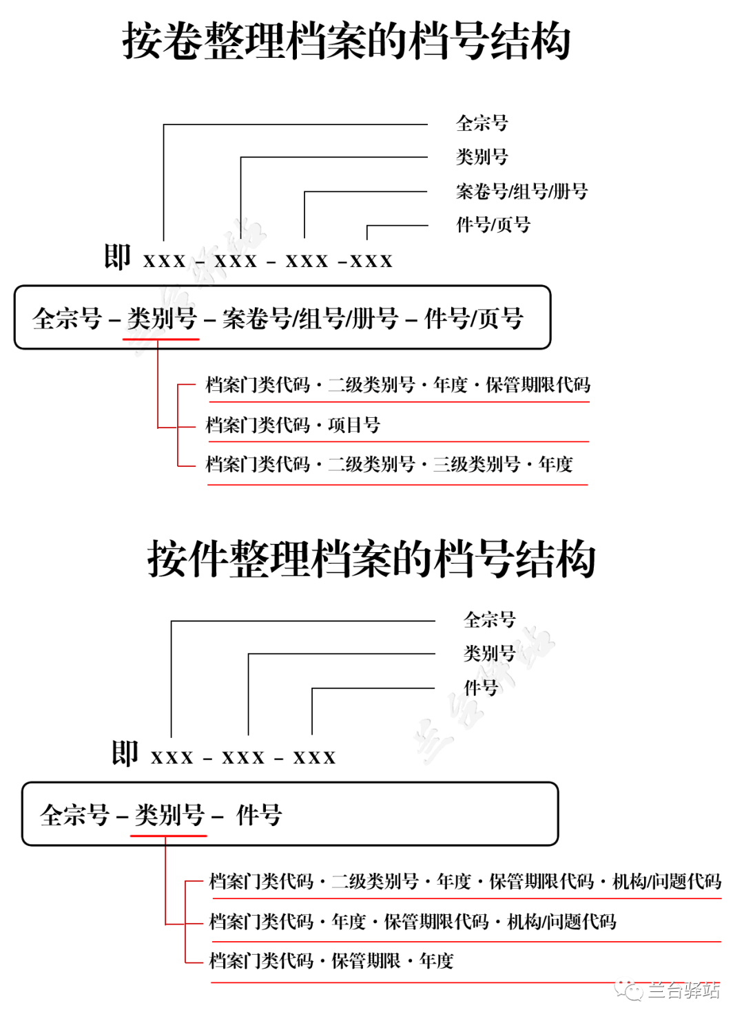 如:全宗号-类别号-案卷号-件号