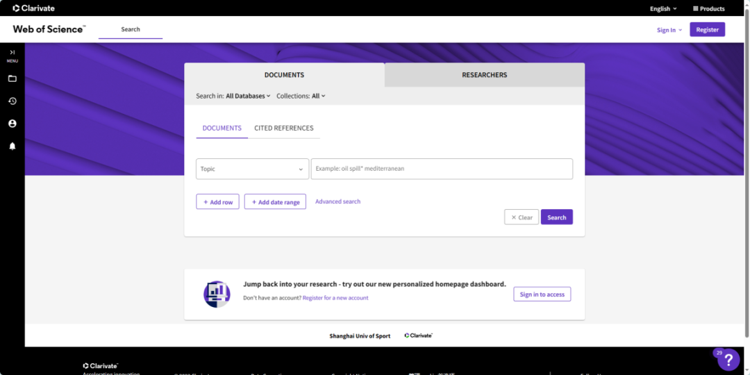 简介:Web of Science(科学引文索引)是一个综合性的学术文献数据库,由Clarivate Analytics(原汤森路透)开发和维护的信息服务平台。支持自然科学、社会科学、艺术与人文学科的文献检索,数据来源于期刊、图书、专利、会议录、网络资源(包括免费开放资源)等。