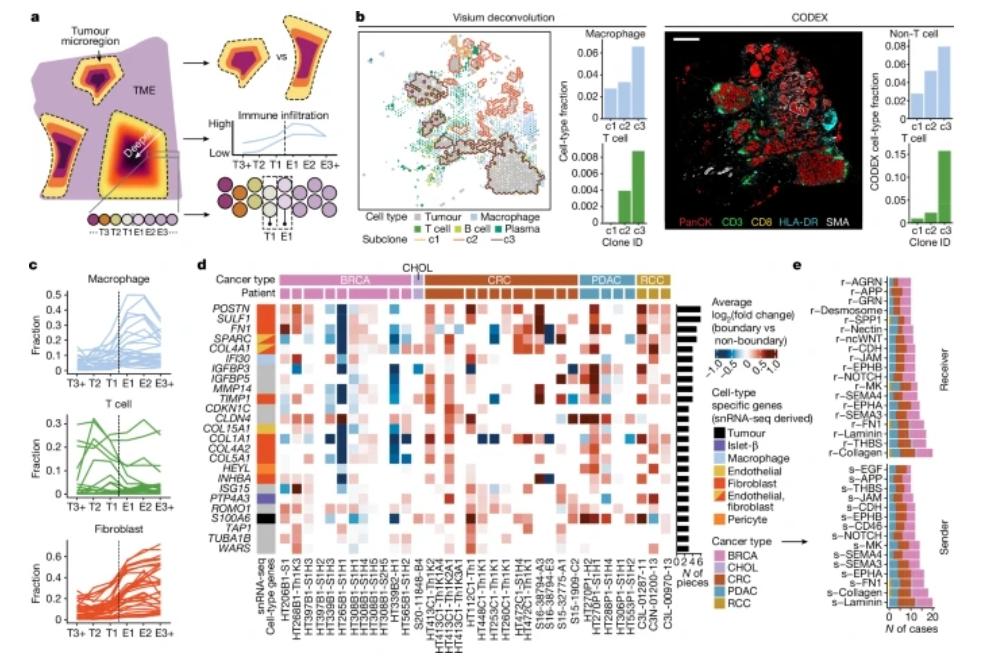微区域边界区域中的tumour-TME相互作用,表现出异质性。