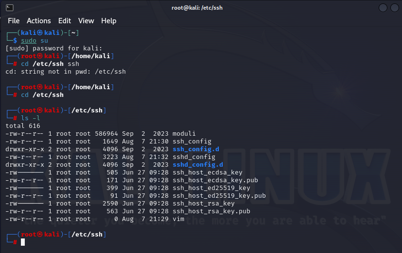 1.先用命令进入到 cd /etc/ssh ssh目录下,用ls命令查看配置文件