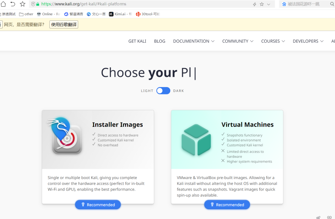 Kali Linux官网下载地址:https://www.kali.org/get-kali/#kali-platforms