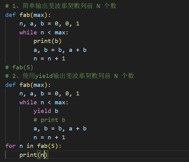 # 2、使用yield输出斐波那契數列前 N 个数